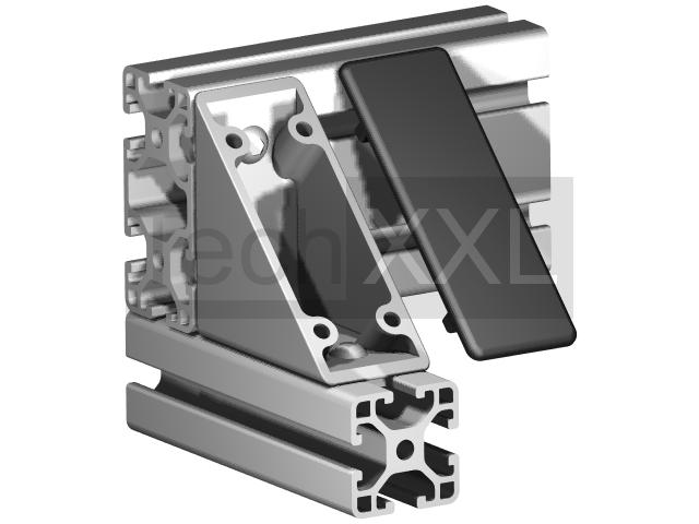 Der Winkel 80 Nut 8 für für Profile im Raster 40 aus Zinkdruckguss mit Nasen als Verdrehsicherung überzeugt nicht nur optisch durch seine silbern glänzende Lackbeschichtung, sondern dient als sichere, stabile sowie insbesondere bearbeitungslose 90°-Verbindung zweier Profilabschnitte. Unter der Artikelnummer S208WS80 ist der Winkel inclusive Nutensteine und Schrauben sowie einer Winkelabdeckkappe als kompletter Satz erhältlich